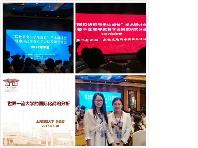2017年7月10日-11日,由中国高等教育学会院校研究分会和江苏师范大学联合主办的“‘院校研究与学生成长’学术研讨会暨中国高等教育学会院校研究分会2017年年会”在徐州开元名都大酒店召开。中国高等教育学会院校研究分会会长、华中科技大学学术委员会副主任刘献君教授,江苏师范大学校长周汝光教授,中国高等教育学会学术部主任高晓杰博士,分会部分常务理事、理事、中外专家学者、研究生、新闻媒体等近500人参会,我校吴云香老师和李月琪老师也参加了会议。