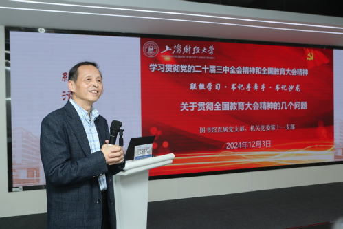 为深入学习贯彻党的二十届三中全会精神和全国教育大会精神,12月3日下午,机关党委第十一支部与图书馆直属党支部在图书馆六楼中厅开展联组学习。本次学习邀请了复旦大学高等教育研究所荣休研究员熊庆年教授作专题辅导报告。