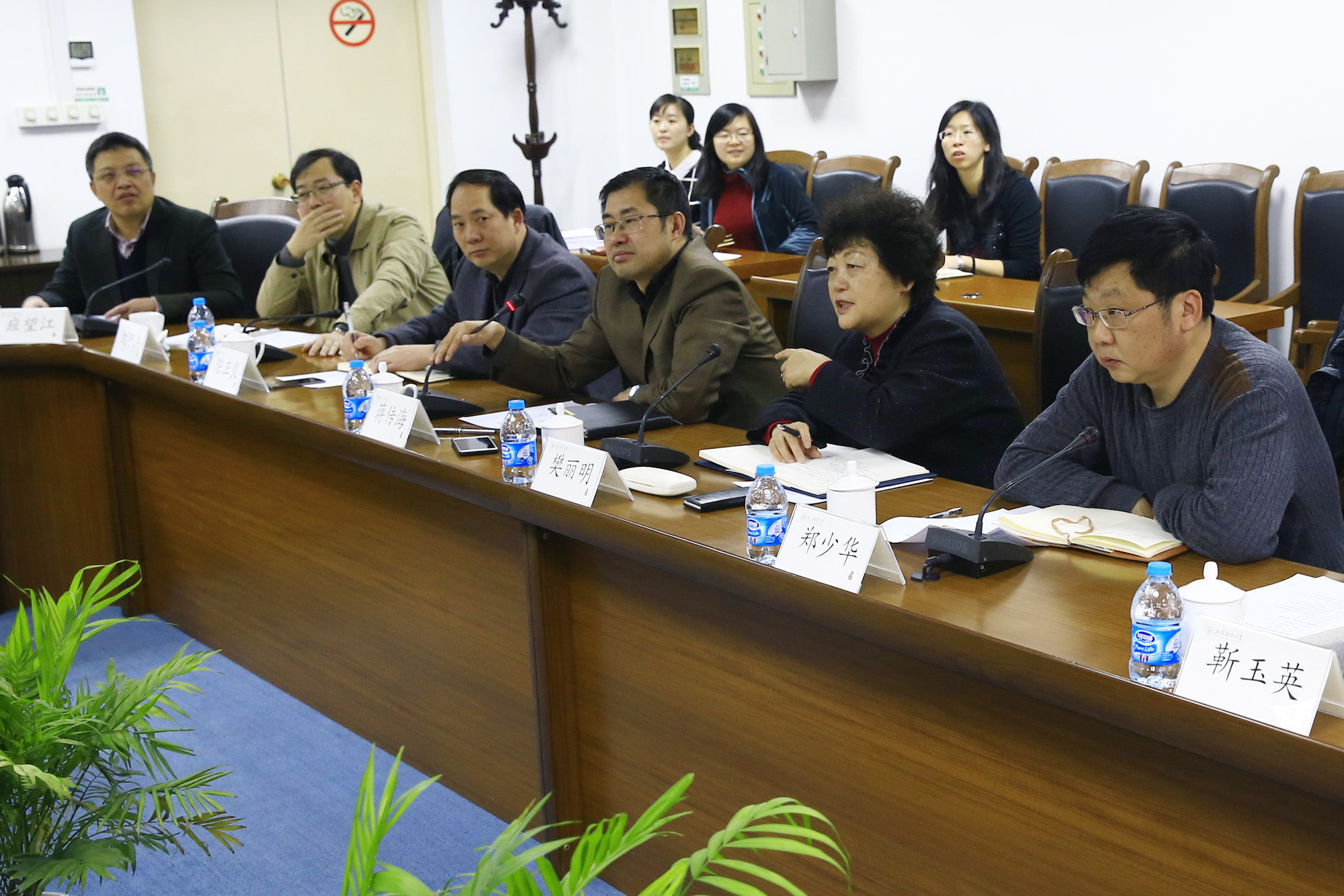 2016年2月24日上午,上海市教委副主任袁雯、科技处处长许开宇等一行四人莅临我校就上海市高峰IV类学科建设指导工作,校长樊丽明、副校长蒋传海、校长助理郑少华以及相关学院、职能部门的负责人参加座谈。