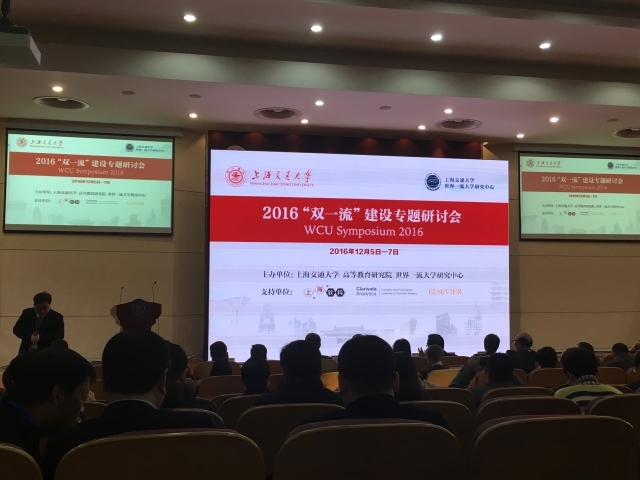 2016年12月6-7日,由上海交通大学世界一流大学研究中心主办,上海软科教育信息咨询有限公司、Clarivate Analytics公司(原汤森路透知识产权与科技事业部)和爱思唯尔公司协办的2016“双一流”建设专题研讨会(WCU Symposium)在上海交通大学闵行校区正式召开。我处研究室李月琪、傅莹等两位老师代表参加了本次大会。